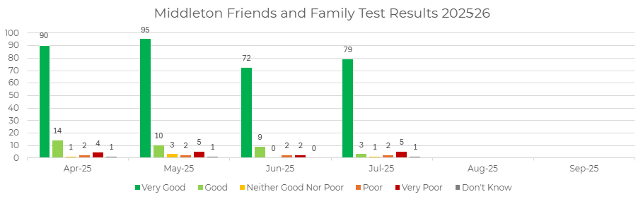We are delighted at this months results of our Friends and Family test at 89% of the submissions being rated Good or Very good.